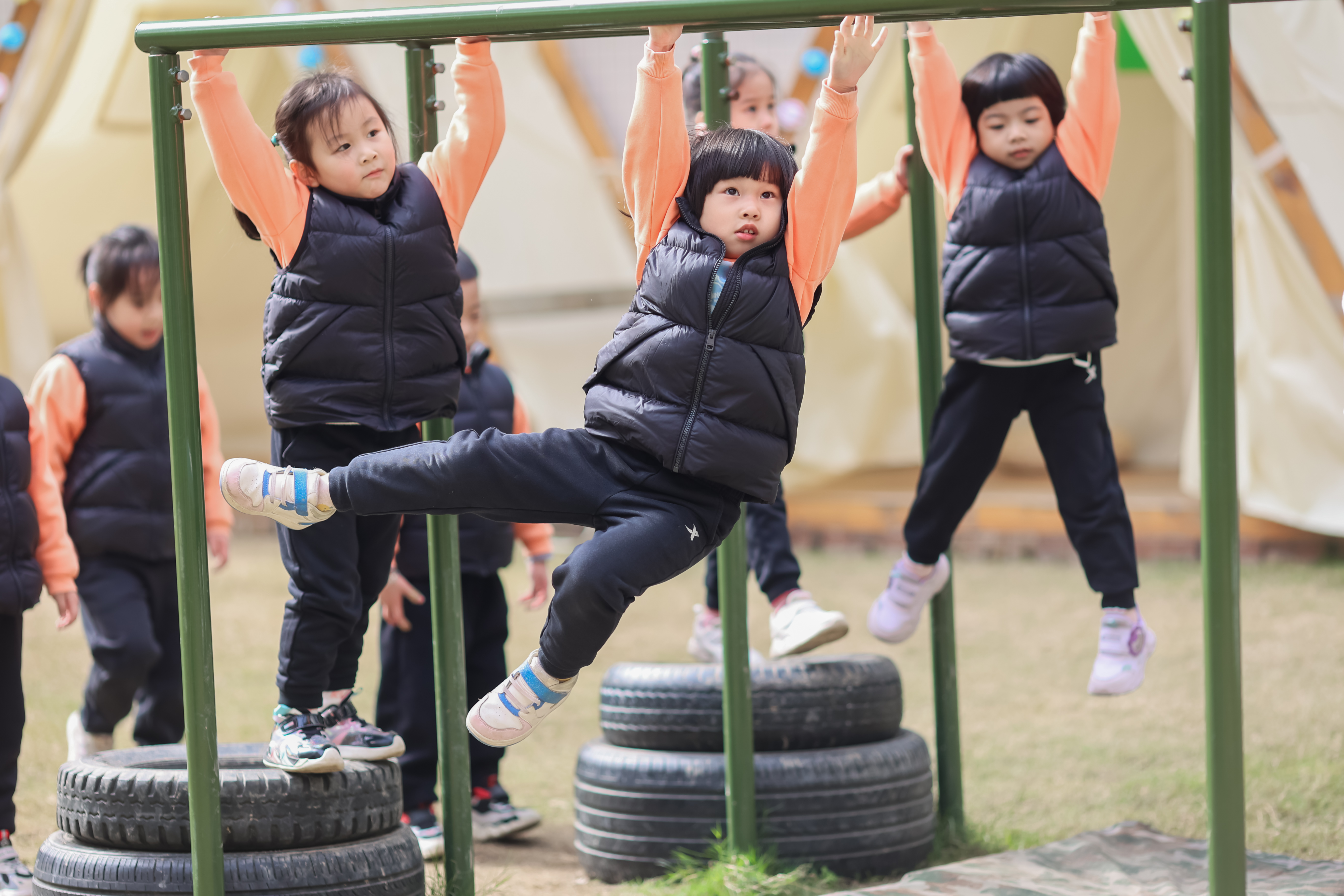 正在“越野”赛道上玩“跑酷”、四肢举动并用爬过妨碍墙,正在悬吊器械上努力荡起身子、抓住一个个吊环曲至完成通关,正在体操垫上完成头手倒立……近日,正在晋江市尝试长儿园内,萌娃正在阳光下挥洒汗水、尽情活动的欢喜场景,成为“让孩子们动起来、玩起来、笑起来”的活泼注脚。
